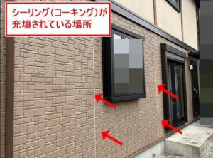 シーリングとは、外壁材同士の継ぎ目やサッシ周りに充填されているゴム状の素材のことです。