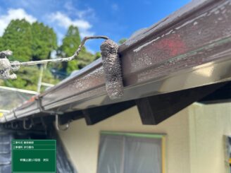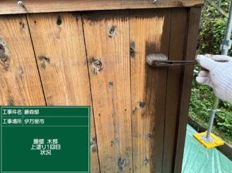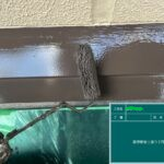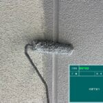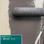【外壁 下塗り】既存外壁材の種類や状態に合った下塗り材を塗布していきます。下地の吸い込みを止め、調整をかけて、仕上げ塗料材の密着性をよくするための大切な工程です。