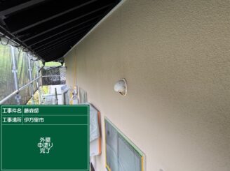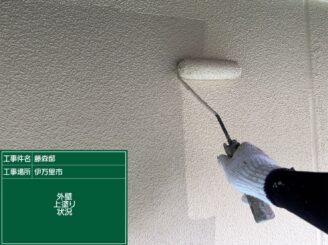 【外壁 上塗り】最後の仕上げ塗装工事です。中塗り・上塗りと塗布量・塗り回数・乾燥時間をメーカ指定基準を厳守して施工し耐久性と共に美観も美しく仕上げていきます。