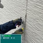 【既存目地シール撤去】経年劣化した既存目地シールをはがしていきます。