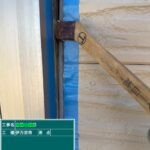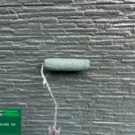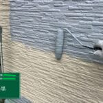 【外壁下塗り】既存外壁材の種類や状態に合った下塗り材を塗布していきます。下地の吸い込みを止め、調整をかけて、仕上げ塗料材の密着性をよくするための大切な工程です。