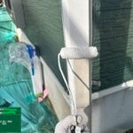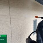 【外壁高圧洗浄】高圧洗浄にて苔・藻・カビ等の汚れや脆弱な塗膜を洗い落とします。