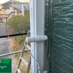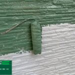 【外壁上塗り】最後の仕上げ塗装工事です。中塗り・上塗りと塗布量・塗り回数・乾燥時間をメーカ指定基準を厳守して施工し耐久性と共に美観も美しく仕上げていきます。